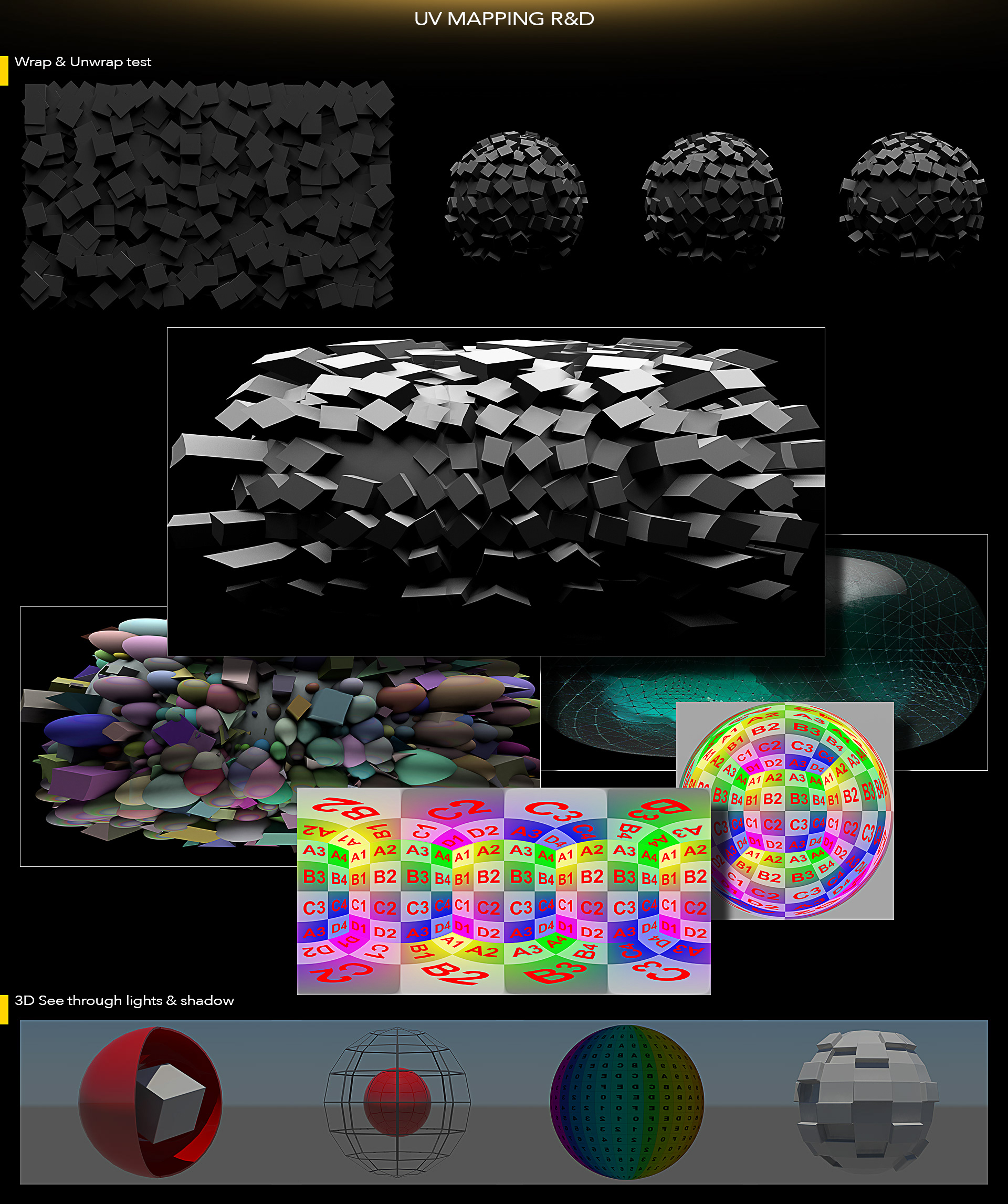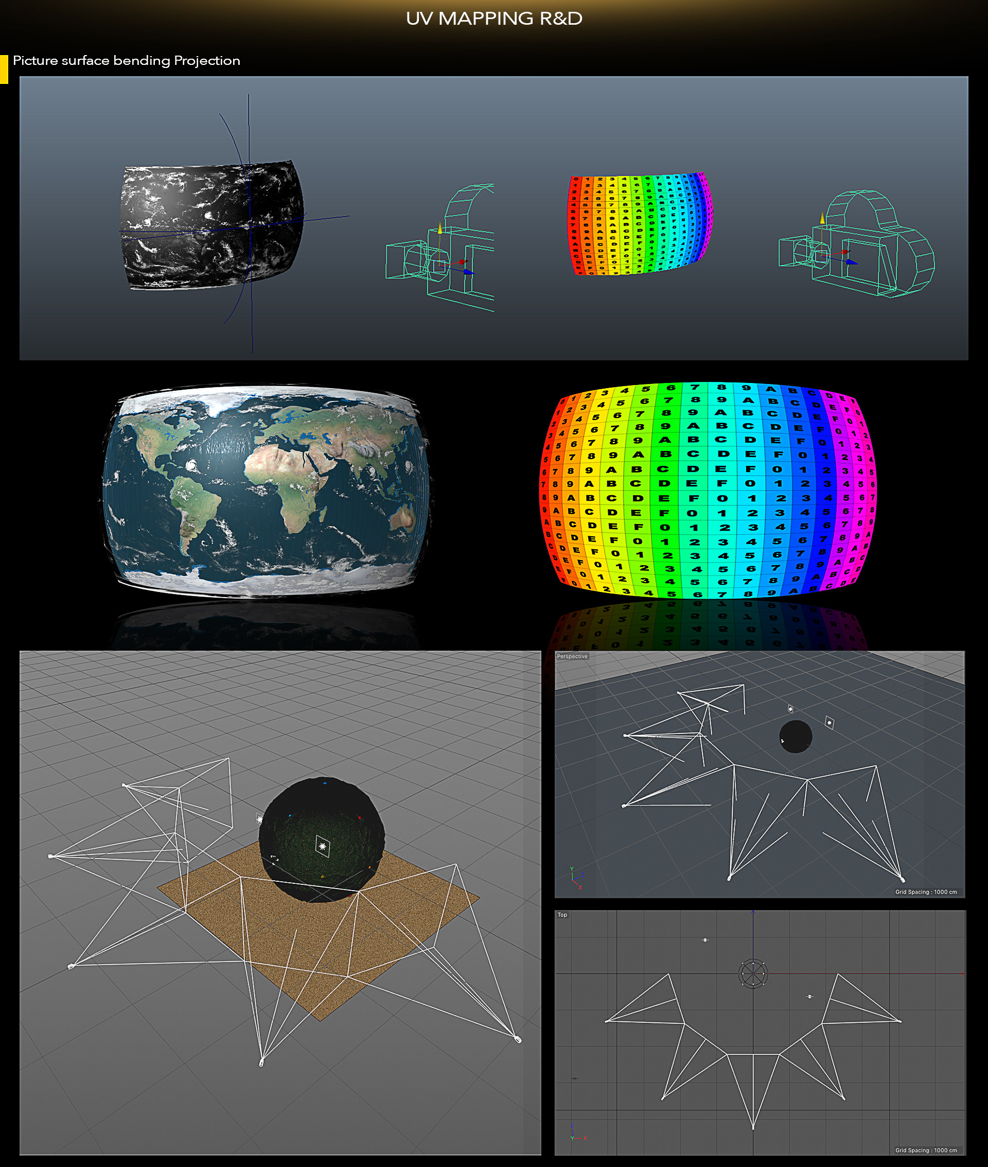 As we are trying not to have the visual only wrapped on the surface, rather making it see through the sphere we did a series of different mapping and UV research for CG creation and unwrap into a flat UV and still maintain the correct perspective in the final results. With a short 3 weeks of time frame, we develop the looks, miniature projection mapping test, CG scene setup, animation with car choreography, render test with high fps. In the end we manage to get very promising feedback from client and content creation industry in China. Thanks to the great effort of our talented production partners Moving Apes Studio, Lorrypop Studio, Two people studio and Familee Business.
