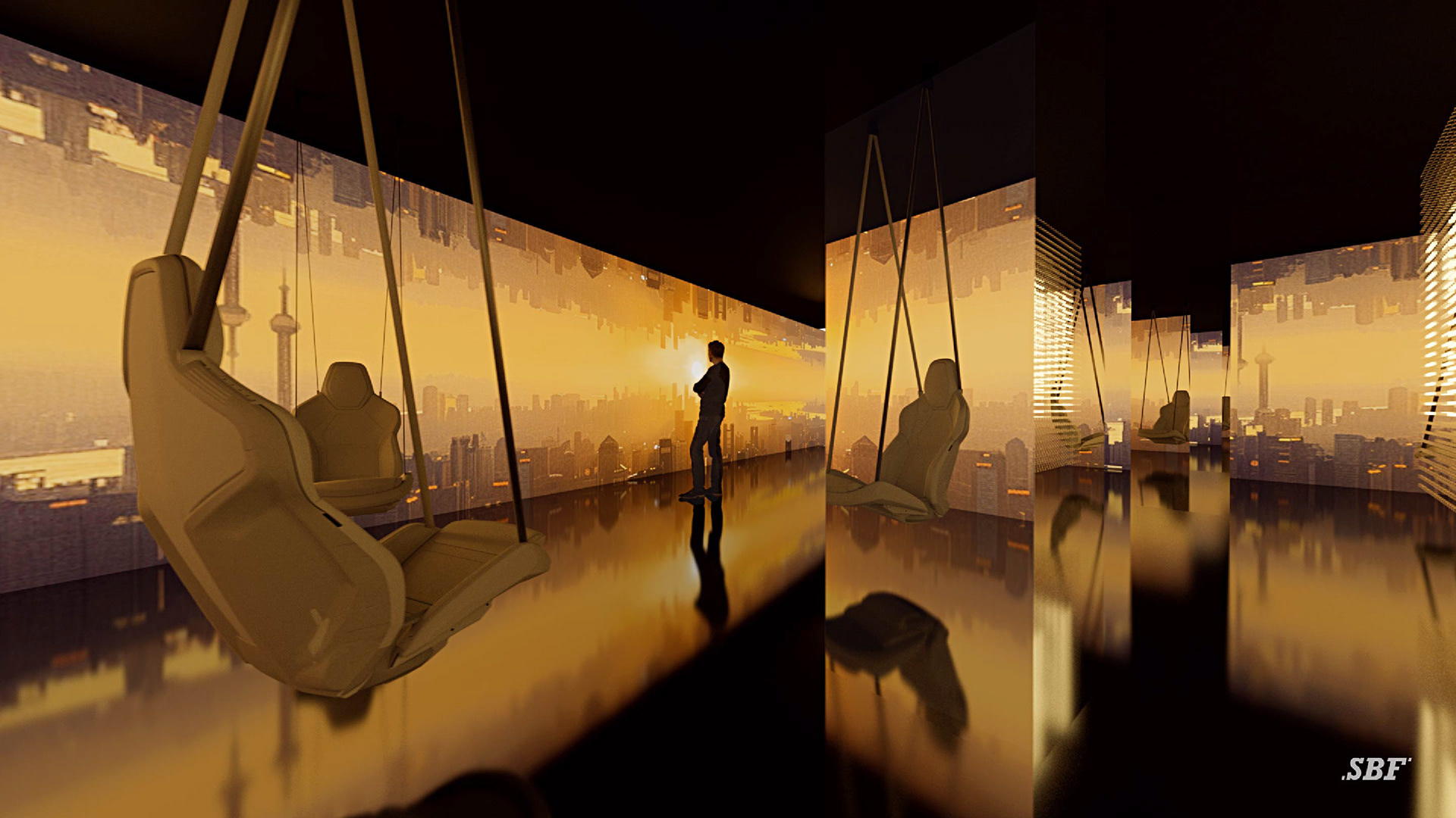 Another notable feature was the “Golden Room” an immersive visual experience crafted by our team. This room featured a four-walled LED screen, providing an all-encompassing visual display that transported guests into different realm. The interactive floor enhanced the sensory experience, allowing guests to interact the visuals dynamically, while the matrix LED light positioned in the middle of the room added depth and complexity to the immersive environment. There were two versions of the same concept for the “Golden Room”: visuals before the launch, which served as a teaser for the ID. UNYX without revealing much of the car, and the visuals after the launch, where the car was prominently displayed with aesthetic enhancements.